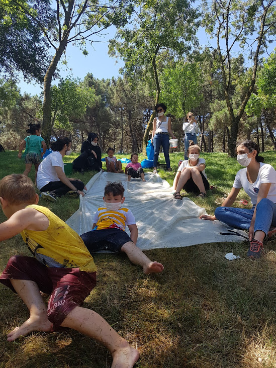 Avcılar İSADEM’e gelen aileler, Yuvamız İstanbul personeli ve İstanbul Gönüllüleri’nin katıldığı etkinlikte çocuklar su dolu şişme havuzda oynadılar, halatlarla ve kumaşlarla istedikleri oyunları kurdular, diledikleri resimleri çizdiler ve müzik yaptılar.