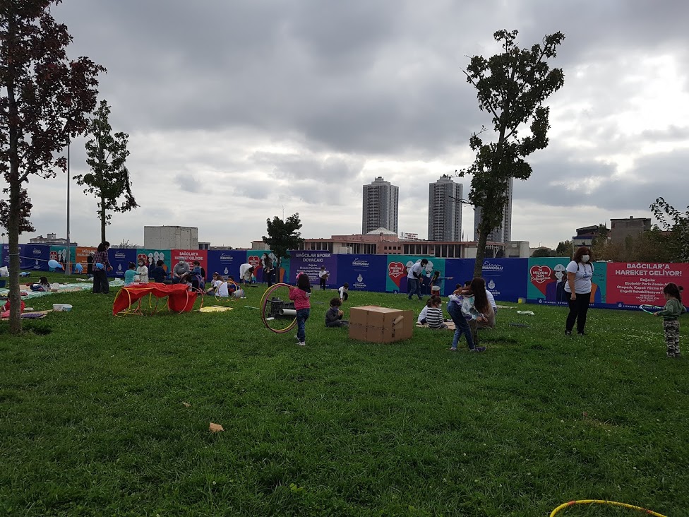 İBB Çocuk Politikaları Koordinatörü Yaprak Sarıışık çocuk parkı olmayan yerlerde kurulan seyyar parkında pandemi süreci nedeniyle gerekli önlemlerin alındığını belirterek “Hop diye kurulan ve kaldırılan bu parklarda çocukların kendi oyunlarını kurup hayal güçleriyle diledikleri gibi eğlenmelerini amaçlıyoruz. Oyunda kullanılan malzemelerimizi de pandemi koşullarına uygun seçtik. Oyun alanı temelde su ve sabun etrafında kurgulandı. Dezenfekte ettiğimiz karton kutu, ip, kumaş gibi malzemeleri dönüştürerek kullanıyor, bu malzemelerle çocukların özgürce oyun kurdukları bir oyun alanı yaratıyoruz” dedi.