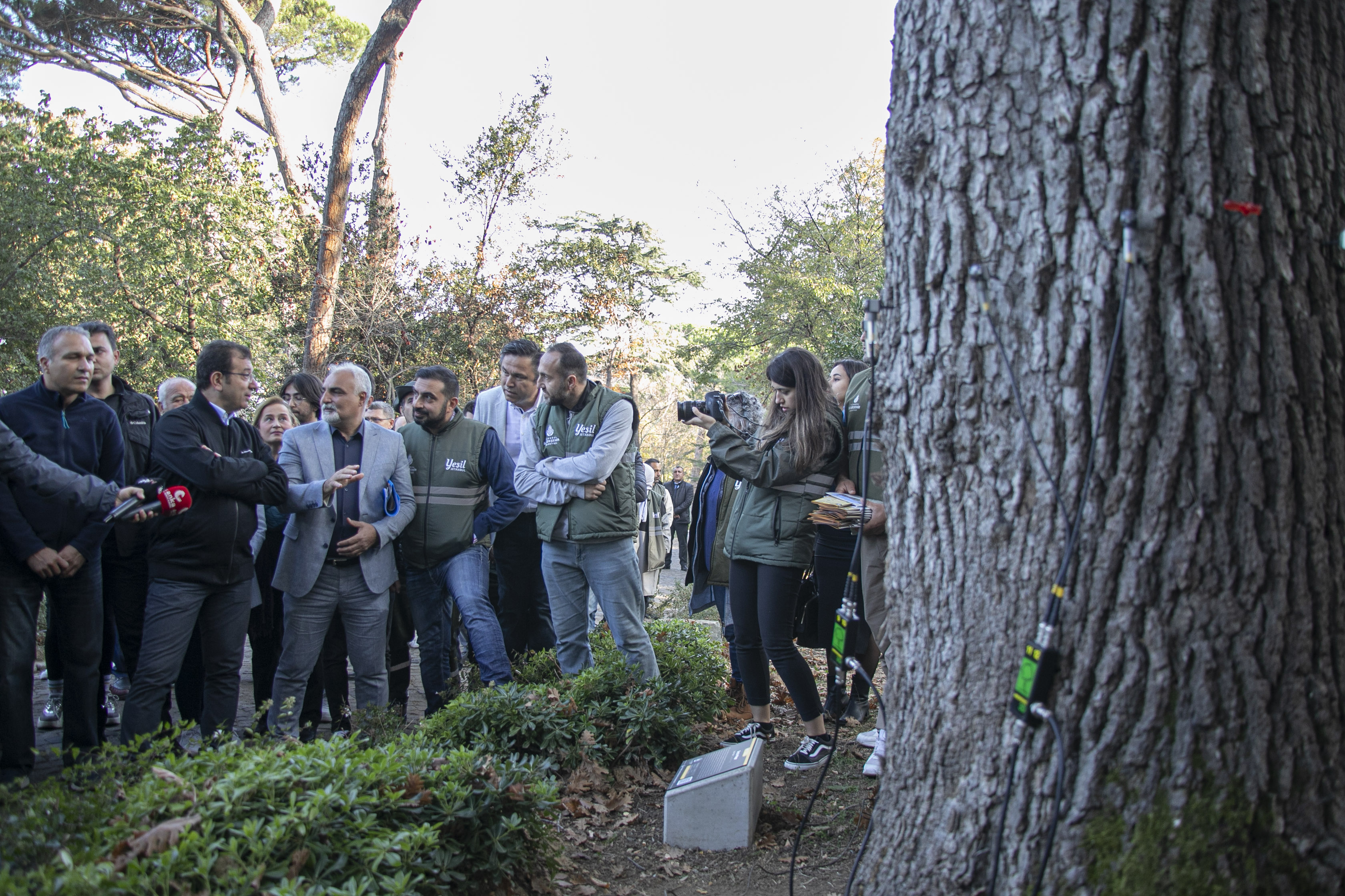 Açılış sırasında Küçük Çamlıca Korusu’nu gezen İBB heyeti korunun yüzlerce yıllık sakinleri olan anıt ağaçları ziyaret ederek onlarla ilgili tetkiklerde bulundu. İBB Başkanı Ekrem İmamoğlu ve İBB Park Bahçe ve Yeşil Alanlar Dairesi Başkanı Prof. Dr. Yasin Çağatay Seçkin anıt ağaçların yaşını ve sağlık durumunu tespit etmede kullanılan tomografi yöntemini bizzat test ettiler. Sayın İmamoğlu ardından İBB Park Bahçeler ve Yeşil Alanlar Dairesi Başkanlığı Kentsel Ekolojik Sistemler Müdürlüğü tarafından hazırlanmış olan anıt ağaç projesini de incelediler. Sayın İmamoğlu akıllı cihazdan anıt ağaç için bizzat hazırlanmış olan karekodu okutarak “Anıt Ağaç İstanbul” sitesine, hemen önlerindeki anıt ağacın bilgilerine ve hikâyesine ulaştılar.