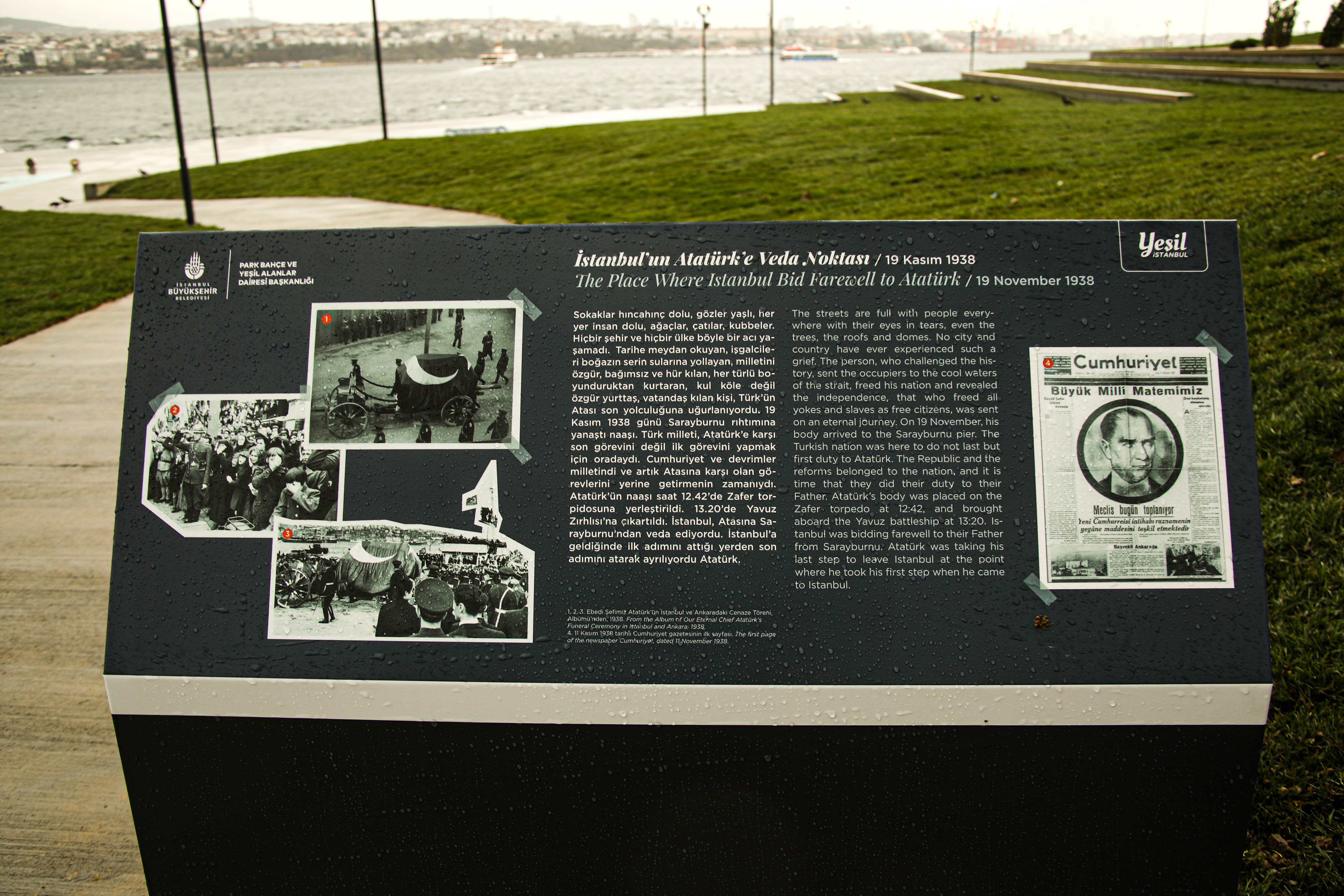 Tarihi yarımadanın burnunda bulunan Sarayburnu Parkı; Gülhane Parkı, tarihi surlar, Topkapı Sarayı gibi pek çok alanın oldukça yakınında yer almaktadır. Cumhuriyet tarihinde inşa edilen ilk Atatürk heykelinin burada bulunması yine Sarayburnu’ndan başlayan İngiliz işgal kuvvetlerinin İstanbul’a girişlerinin önünde duran bir kale gibi Sarayburnu Parkı’nda göğe yükselmektedir. Tarihi olarak önemli olaylara ev sahipliği yapmış olan Sarayburnu ve Gülhane Parkları adeta Osmanlı modernleşmesinin mihenk taşlarından biri sayılan ve halk arasında Tanzimat Fermanı olarak da bilinen Gülhane Hatt-ı Hümayunu’nun ilan edildiği, Cumhuriyet döneminde de modern Türk alfabesinin tanıtıldığı yerdir.