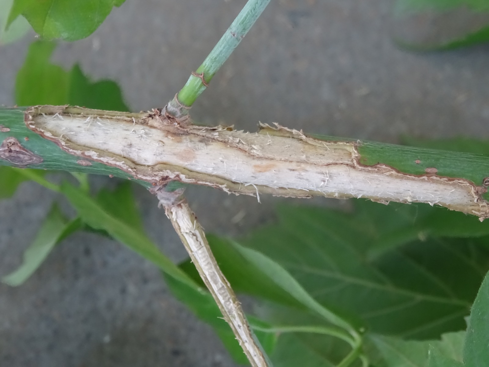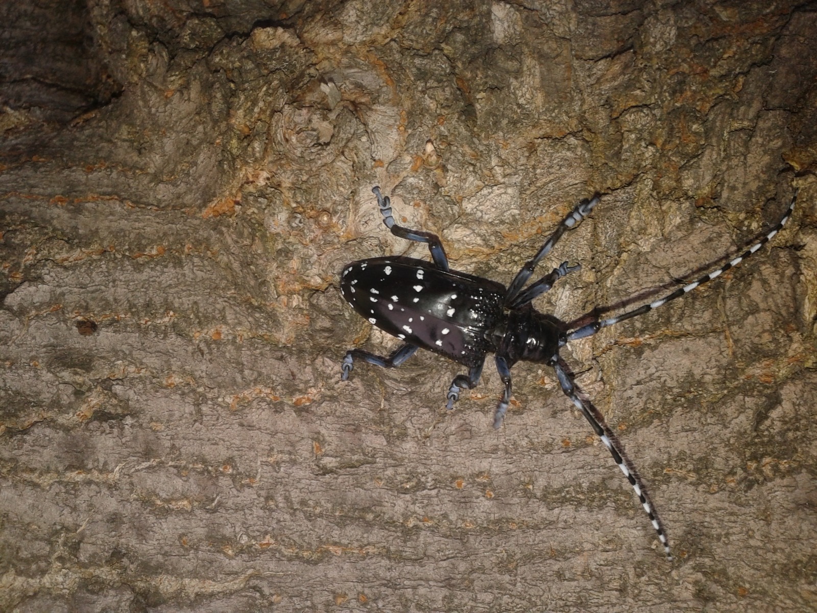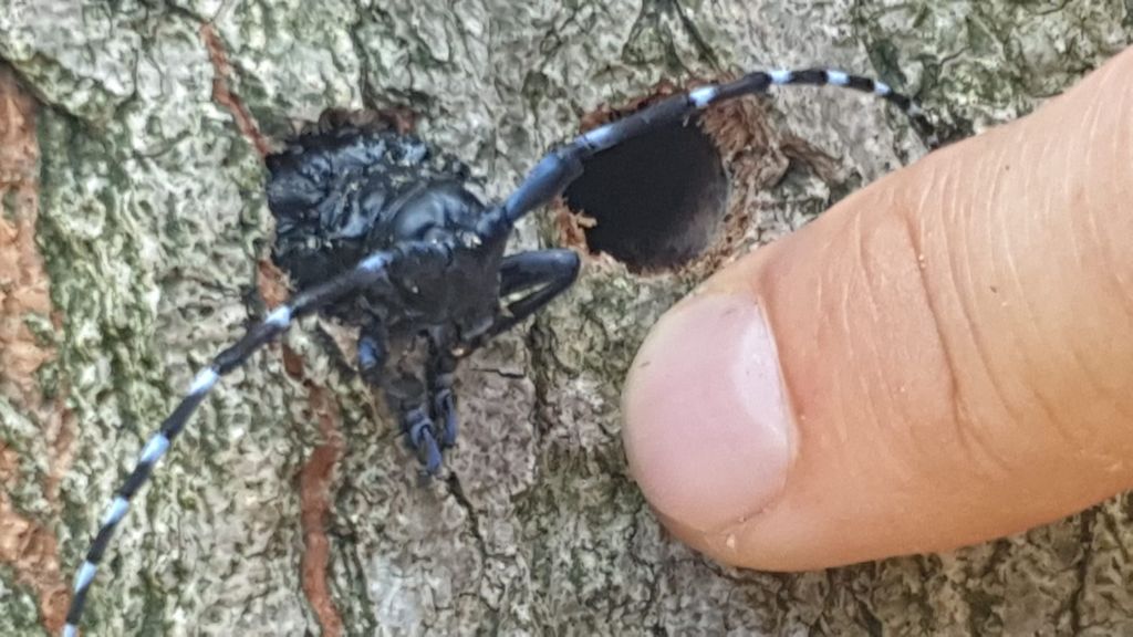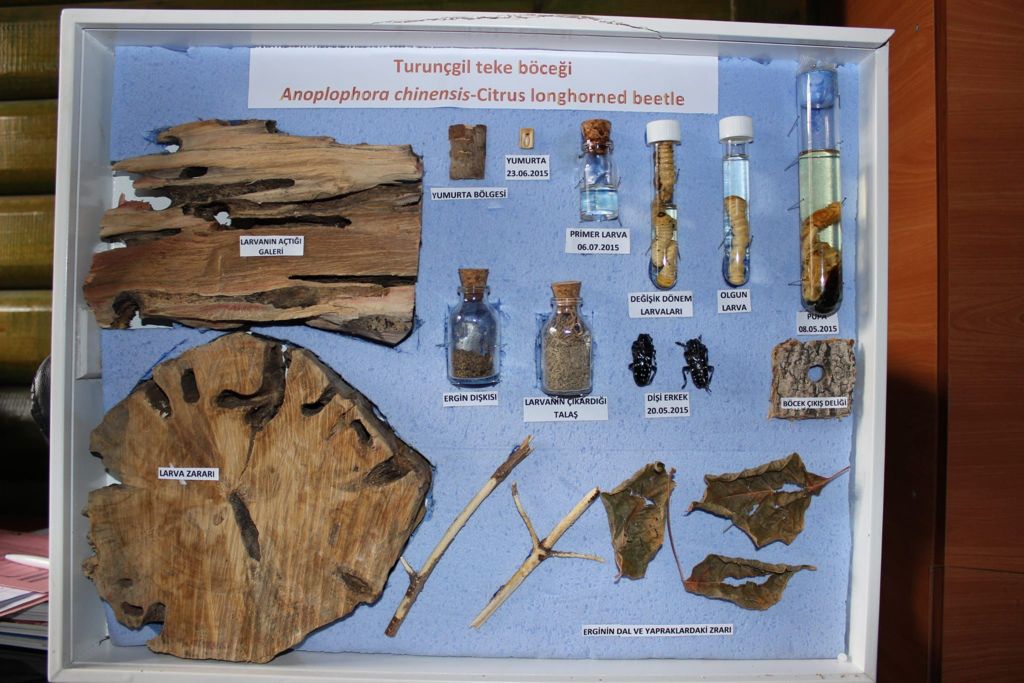 Turunçgil Uzun Antenli Böceği (Anoplophora chinensis) ağaçların kabuk dokusuna yumurta bırakarak larvalaşma dönemi için uygun ortam sağlar. Ağaç dokusundan beslenen larvalar, ağacın dışına talaş bırakır, ergin olduklarında ise ağaç gövdesinde delikler açarak uçmaya başlar.