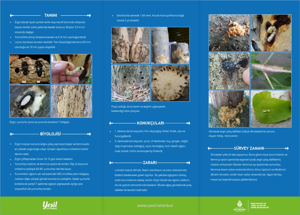 Ağaçların odun dokusunda görülen delikler, kabuk kısmında yumurta yerleri ve kök boğazına yakın talaş gibi işaretler görmeniz durumunda, sosyal medya hesaplarımız üzerinden haber vermeniz durumunda ağaçlarımızı koruyarak Yeşil İstanbul'a katkı sağlayabilirsiniz.