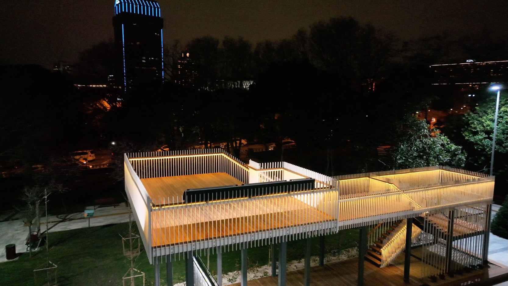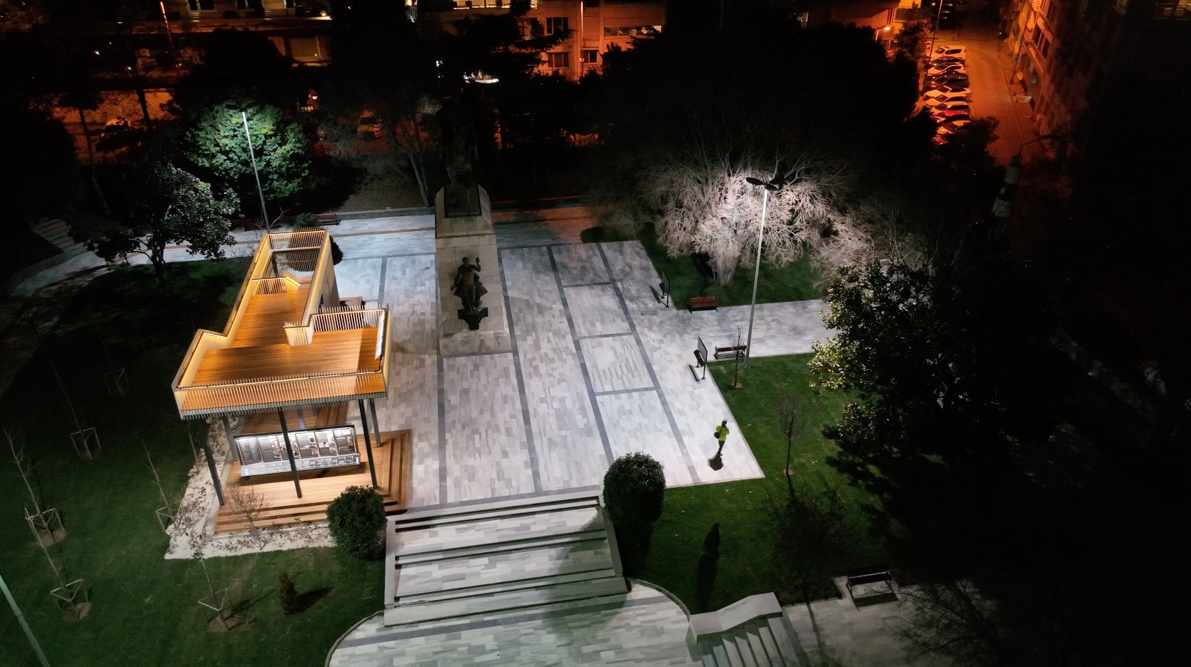 104 m2 taban alanına sahip geçici çelik sergi strüktürü yerleştirilmiştir. Mevcut ağaçlar korunmuş, 3190m2 mevcut yeşil alan yeniden düzenlenmiştir.