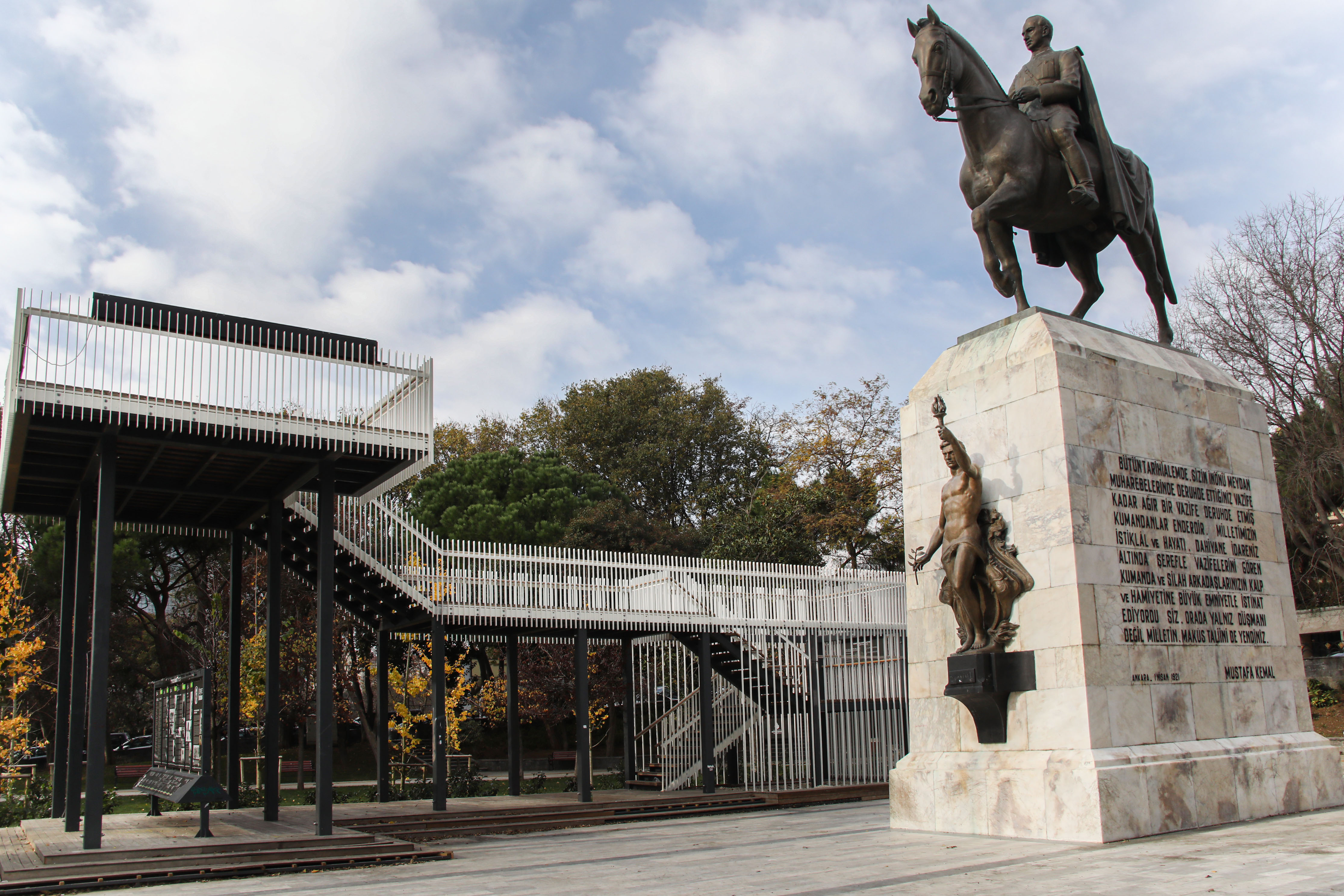 Proje alanı, Cumhuriyetimizin ilanından sonra Türkiye'nin ilk başbakanı ve ikinci cumhurbaşkanı olan İsmet İnönü’nün atlı heykelinin de bulunduğu Maçka’daki İnönü Parkı’dır. Parkta bulunan, kaidesiyle birlikte 13 metreye varan heykel, Taksim Gezi Parkı’nın içine dikilmek üzere 1940 yılında Alman heykeltraş Rudolf Belling’e yaptırılmış daha sonra yer değişikliği yapılarak İsmet İnönü’nün evinin önündeki Taşlık Parkı’na (Günümüzdeki adıyla İnönü Parkı) konulmak üzere karar alınmış, 1982 yılında şimdiki yerine konulmuştur.